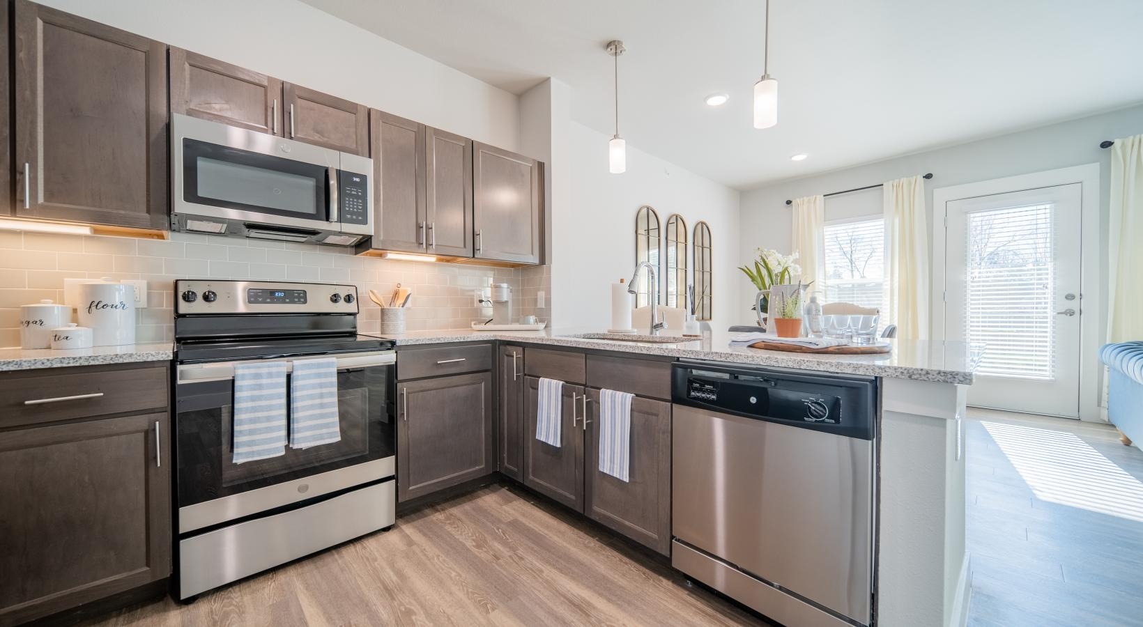 • a kitchen with stainless steel appliances