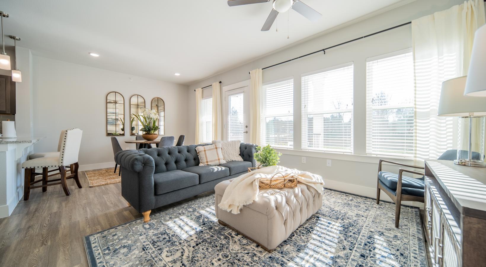 • a living room with windows and couch