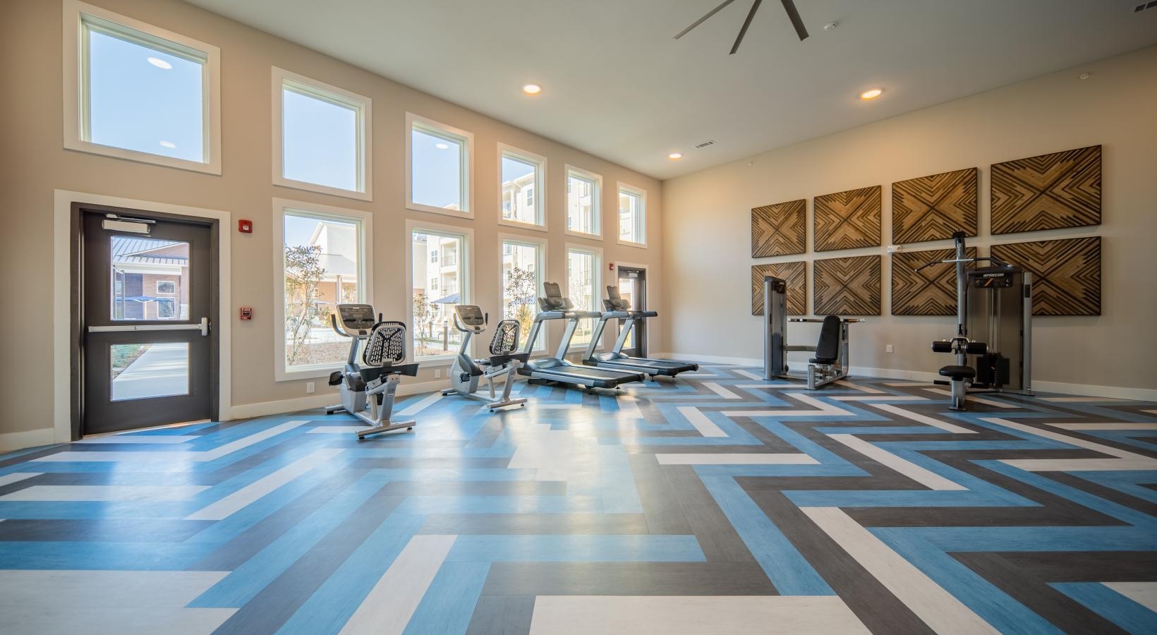 • a gym with exercise equipment
