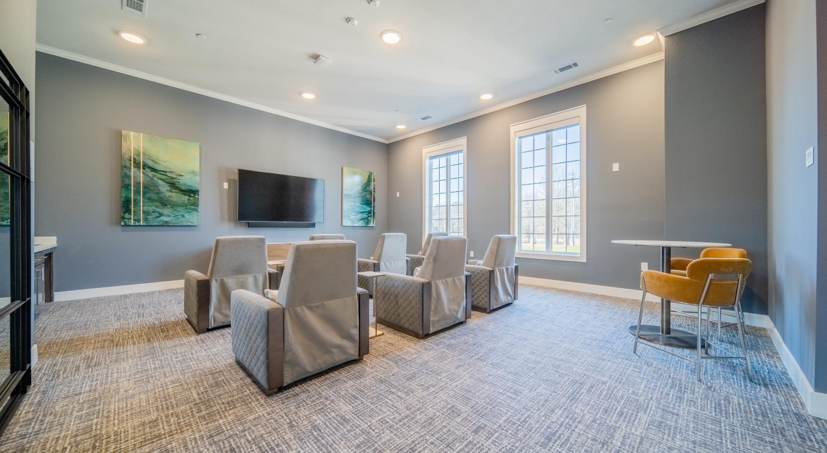 • a room with chairs and a tv